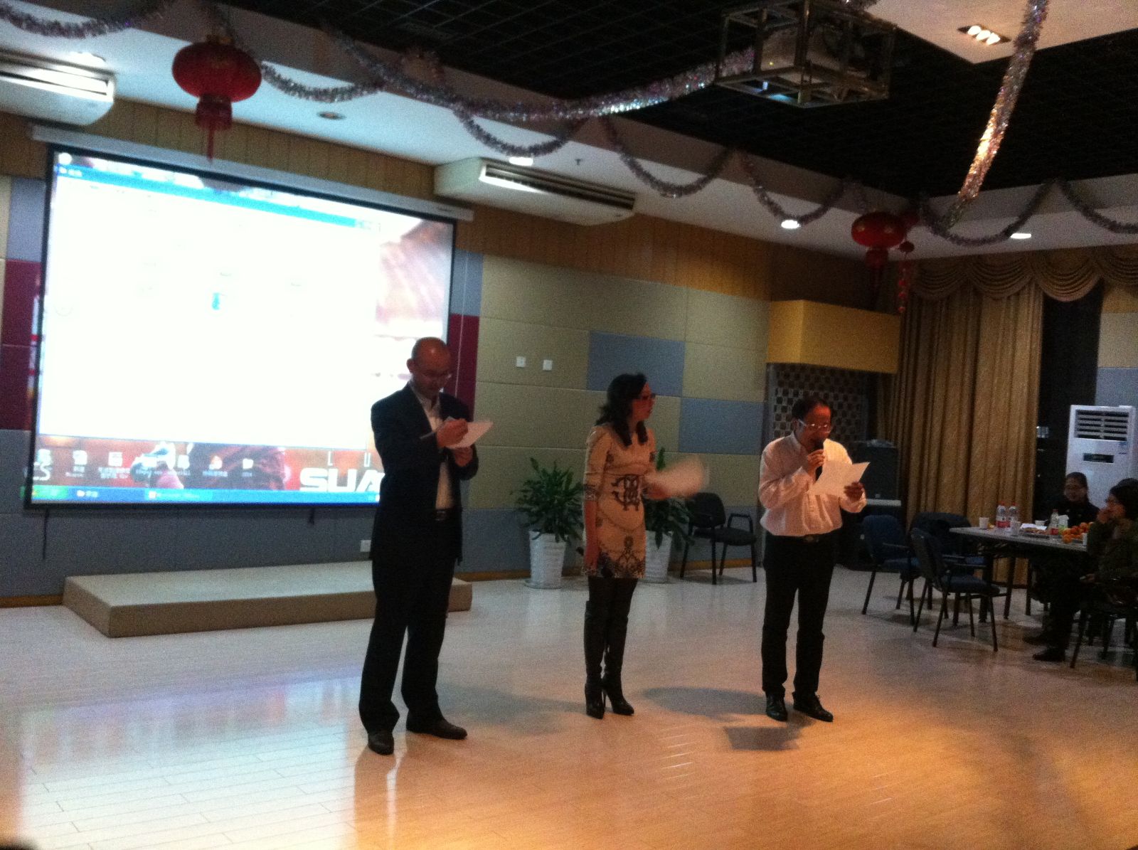 晚会气氛热烈,笑声不断。忙碌了一年的同事以及家属们,本着互哺共生的精神,相聚一堂,共同创造着快乐,共同分享着快乐。就这样,让我们快快乐乐地告别2013年、迎接2014年的到来!