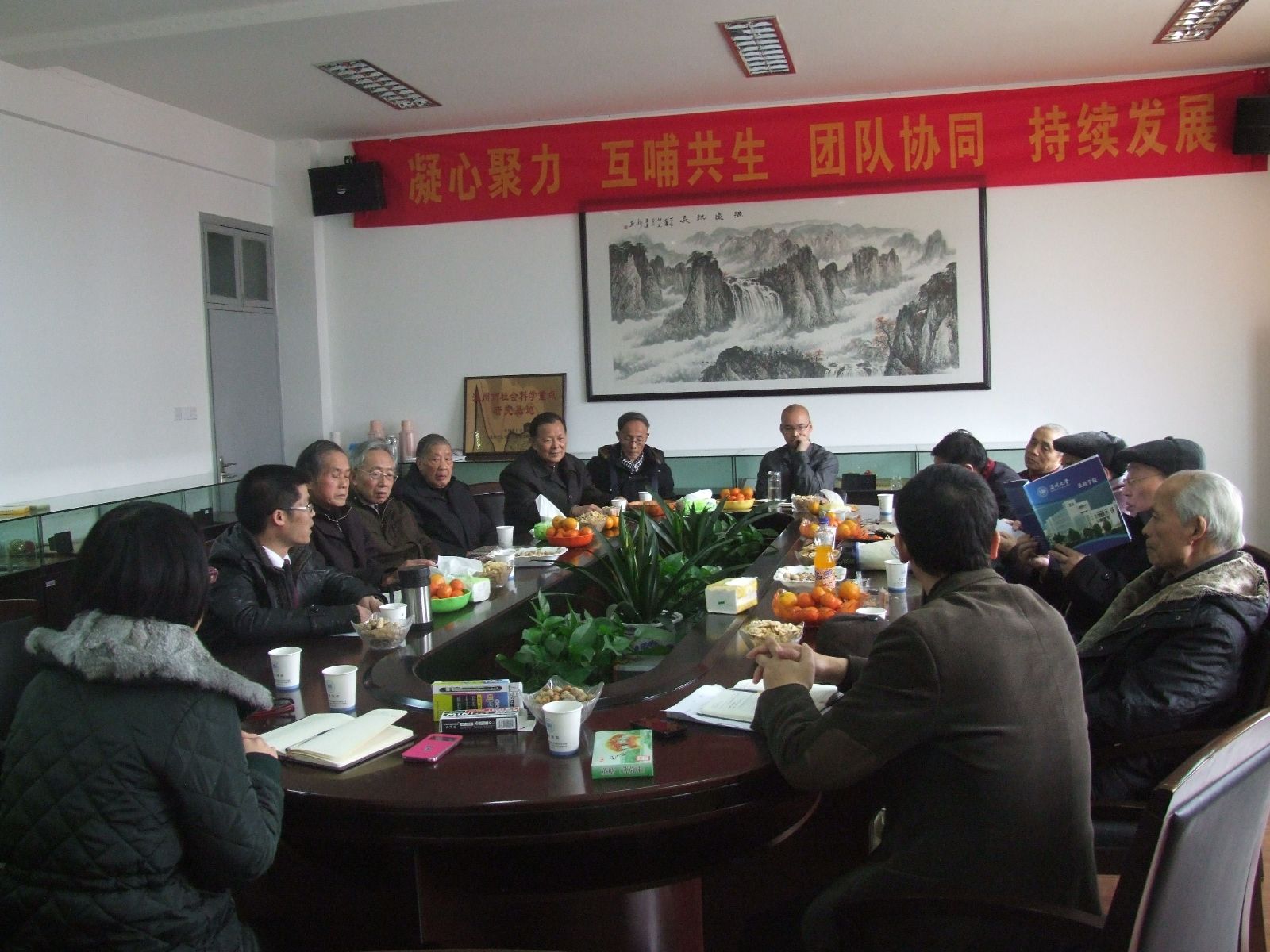 在全国上下深入学习贯彻十八届三中全会精神之际,2014年1月7日,法政av天堂 邀请历任离退休领导和老教师前来av天堂 举行座谈会,共商av天堂 全面深化改革和发展大计。曾经担任过av天堂 (原称温州师范专科学校政治科、温州师范av天堂 政教系等)领导的原温州师范av天堂 院长李日增教授、原温州师范av天堂 教务处长吴守德教授、陈治赵教授、胡宪荣教授、陈国治 教授,以及吴思强、张冬、王声多、莫法友、王学林等几位老教授,均应邀出席了座谈会。法政av天堂 领导班子成员钭晓东、王柏民、王宗正出席了座谈会。