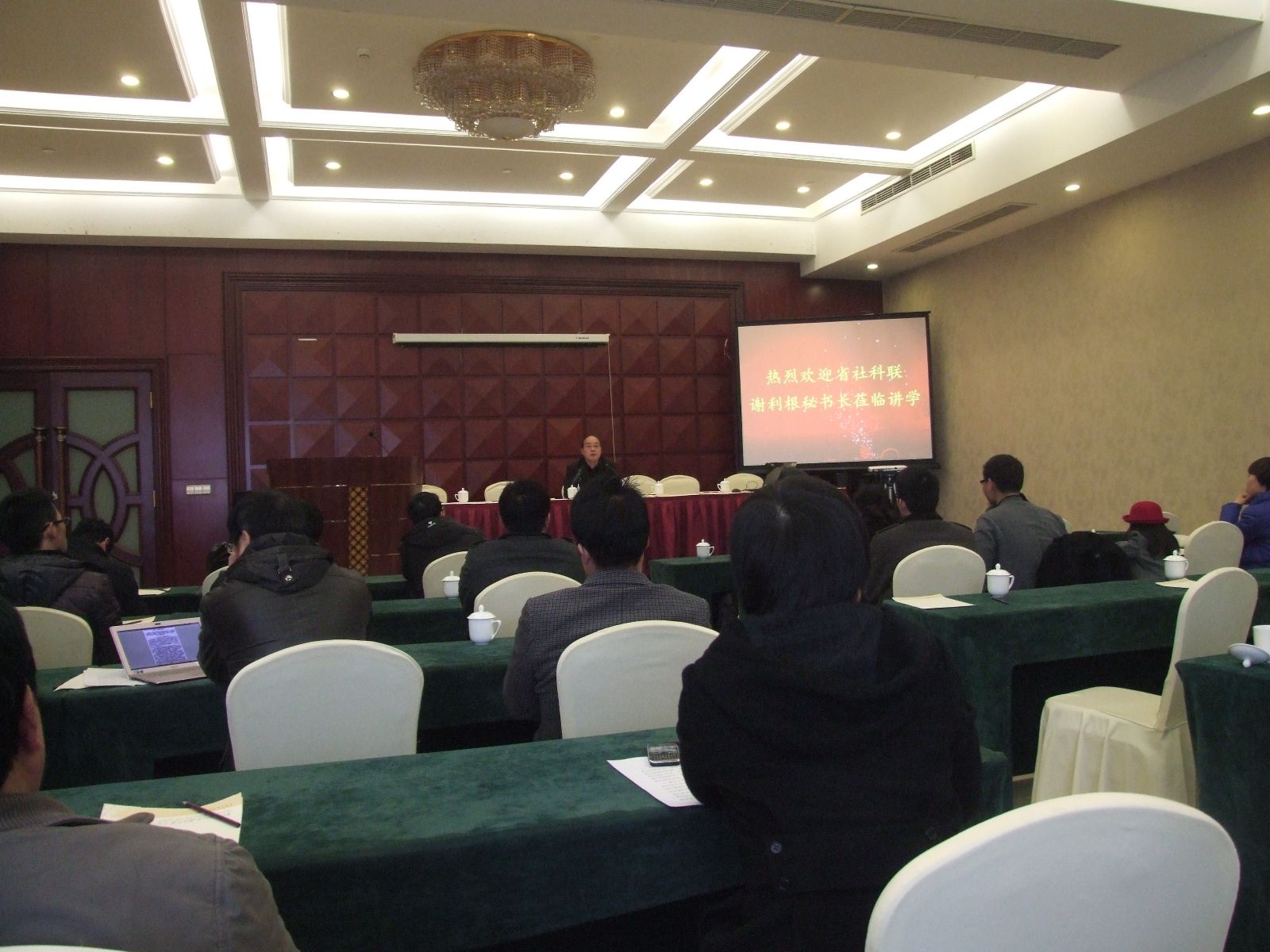 在谢秘书长近一个小时的精彩报告中,我院老师听的聚精会神,心领神会,对以后申报课题充满了信心。