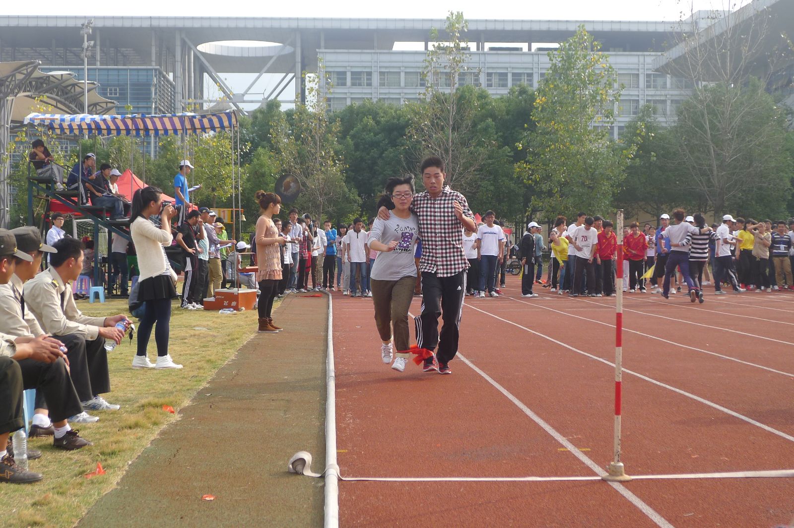 2012年10月24日下午,av天堂 校运动会"两人三足"团体接力赛在北校运动场举行,法政av天堂 代表队在本次比赛中为第二组第一道,运动员都进行了提前热身和认真训练,av天堂 党总支副书记严玲红老师、学生科孙德升和白昌科老师也在现场给参赛选手鼓劲加油并作指导。枪声响起,法政运动员便如离弦之箭,每组两个人同心协力,一同向终点奔去,现场的老师和同学们也都为选手呐喊助威。"两人三足"团体接力赛是一项高度需要选手之间紧密团结和协调配合的比赛项目,虽然最终比赛结果法政选手没进入前六强,但是师生在运动场上齐助阵、共拼搏的场面让人感动,也充分彰显了该项比赛的协作精神。