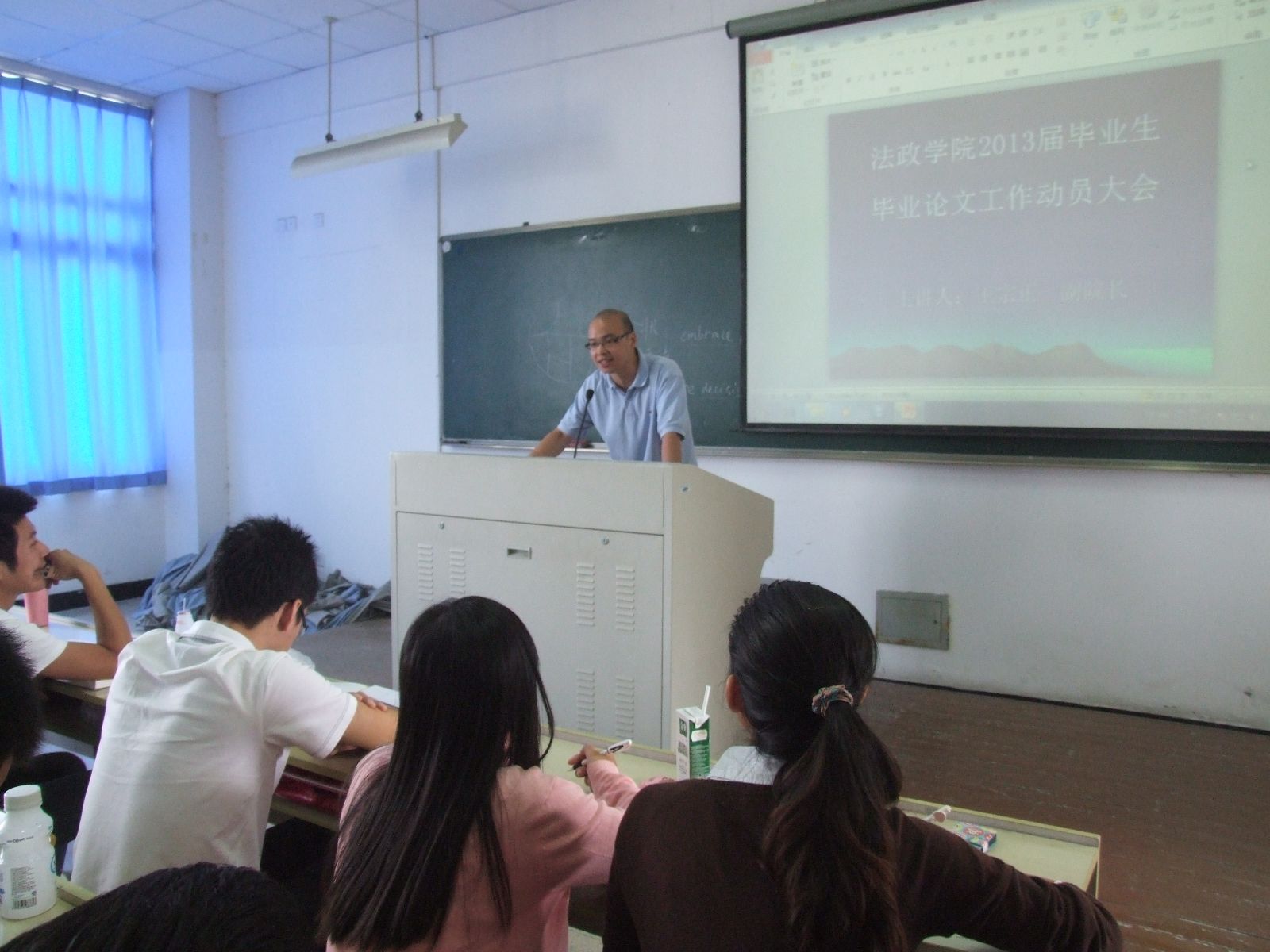 为了让毕业生进一步明确毕业论文要求,确保毕业论文工作顺利进行,2012年10月10日上午,法政av天堂 在2号楼20教室召开了2013届毕业生的毕业论文动员大会。法政av天堂 副院长王宗正教授、教学科夏小娜老师以及av天堂 近200名毕业生参加了本次动员大会,会议由副院长王宗正教授主讲。