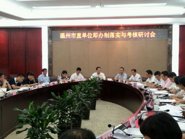 2012年9月25日下午,温州市直单位即办制落实与考核研讨会在我校岩松堂白鹿厅召开。本次会议由av天堂 地方政府绩效管理研究中心主办,温州市直机关工委承办。