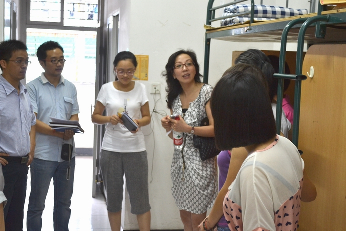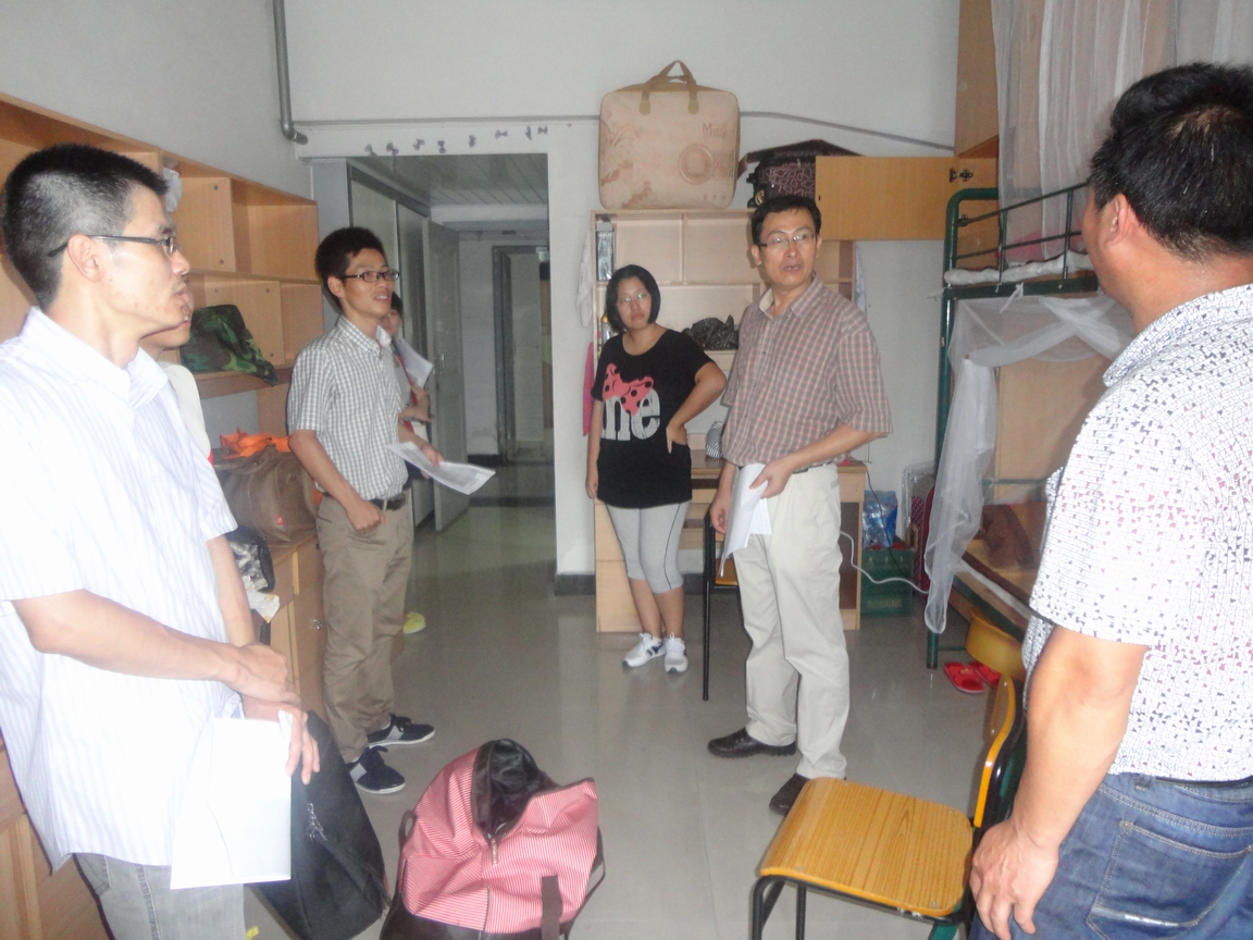 2012年9月9日,法政av天堂 新生正式报到,下午报到工作基本结束,新生们都住进了温暖舒适的新家。我院迎来了充满激情怀揣梦想的205位2012级新生。为及时了解2012级新生到校后的生活面貌,为加强与新生们的沟通交流,下午3点30分,法政av天堂 院长钭晓东、党总支书记王柏民、党总支副书记严玲红、副院长王宗正分组带领各系主任、新生班主任、院办公室、教学科、学生科辅导员老师及新生班主任助理等分组逐一走访了全院新生寝室,了解新生报到注册和入住公寓情况。