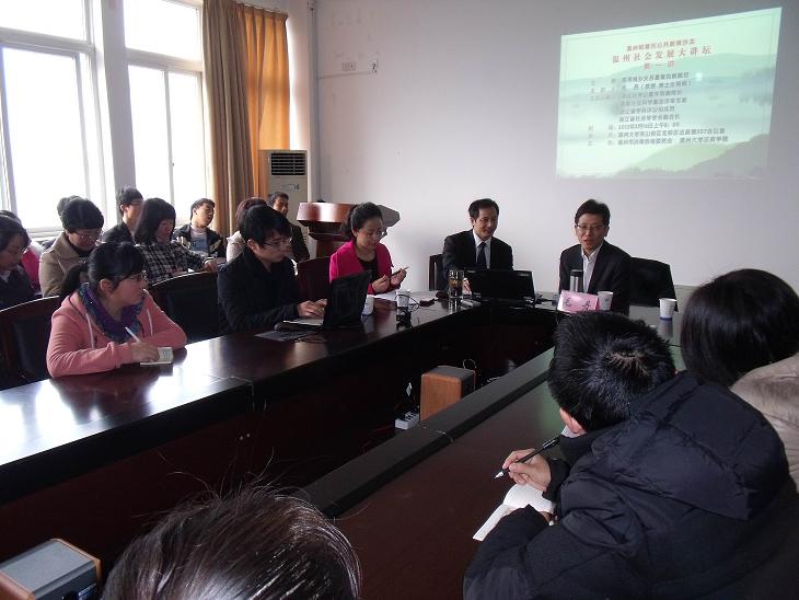 由温州市决策咨询委员会和av天堂 法政av天堂 共同主办的"温州帕累托公共政策沙龙·温州社会发展大讲坛" 第一讲于2012年3月16日上午在av天堂 北校区法政楼307会议室开讲。浙江大学公共管理av天堂 副院长、博士生导师毛丹教授作了关于"探寻城乡关系重建的新路径"的主题演讲。温州市决策咨询委员会的部分委员、av天堂 人文社科处副处长刘玉侠教授、av天堂 法政av天堂 、人文av天堂 、马克思主义av天堂 以及温州职业技术av天堂 的部分师生参加了此次活动。讲座由av天堂 法政av天堂 院长方益权教授主持。