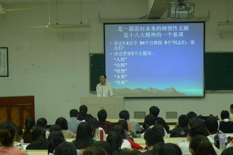 2011年11月7日晚6:30,法政av天堂 第十五期入党积极分子培训班在法政楼203教室隆重开班。本次培训班由法政av天堂 学生科科长杨振海主持,校党委宣传部潘玉驹部长为学员们讲授了培训班第一课。