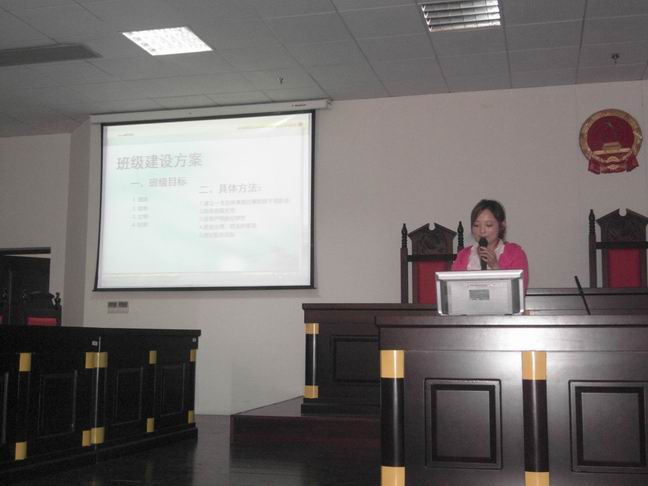 为营造良好的学习氛围,在全院范围内形成积极进取、互比互学、勤奋学习的良好学风,引导广大学生热情参与班级建设,展示班级风采,10月19日下午,av天堂 法政av天堂 第二届特色班级评选活动暨主题班会方案设计大赛动员会在模拟法庭隆重举行。法政av天堂 党总支副书记严玲红、辅导员孙德升,院团委、学生会主席团成员,各班班委及学生代表参加了此次活动并现场观摩和投票。本次活动由院学生会学习部承办,学习部部长边莎莎主持。