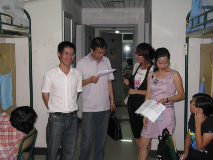 副院长姚周辉、钭晓东,党总支副书记严玲红带领新生班主任、辅导员、党员班主任助理等分组逐一走访了全院新生寝室。