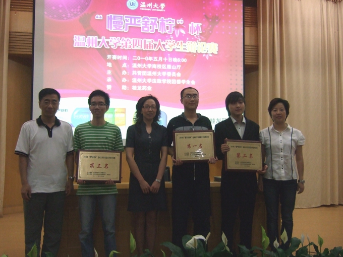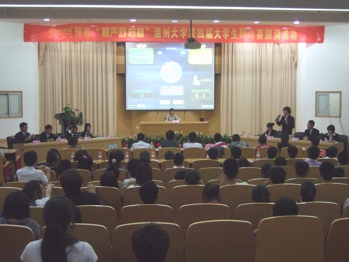 月9日晚,由共青团av天堂 委员会主办、法政av天堂 团委学生会承办的"慢严舒柠杯"av天堂 第四届大学生辩论赛决赛在南校雁山厅举行。法政av天堂 党总支副书记严玲红、物电av天堂 党总支副书记陈宏毅、赞助商桂龙药业浙南区张杰经理出席并观看比赛,法政av天堂 学生科孙德升、林丽丽,物电av天堂 学生科张丽艳、孙双等也到场为选手加油助威。