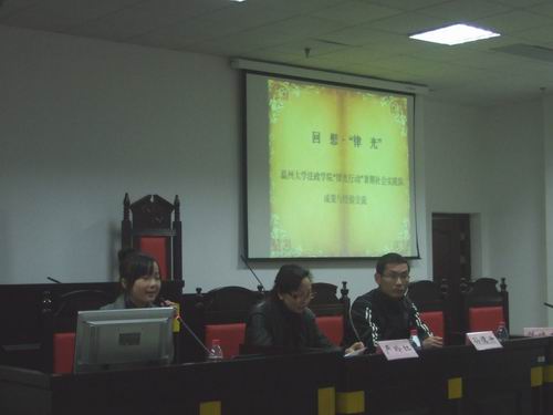 首先,严玲红副书记宣读法政av天堂 2009年度暑期社会实践省、市、校、院级优秀团队及先进个人、优秀通讯员、优秀论文、优秀DV和摄影作品获奖名单。严书记向获奖团队和个人表示祝贺并希望他们能够将实践当中取得的人生经验和收获的心得感悟融入到在校期间的学习和生活中,更好指导自我成长成才。接着,在"暑期社会实践成果与经验交流"环节中,法政av天堂 "追溯建国六十周年宜一村发展历程"实践队队长王春晓、"律光行动"实践队队长蒋丽敏、"关注农村医保创建和谐社会"实践队队长范燕、"情系永嘉山坑、服务新农村"实践队队长张巧玲分别分享了实践队的策划、实施过程和注意事项等经验心得。最后,钭晓东副院长对本次会议作了总结讲话,钭老师用"用足资源、做足功课、安全秩序、社会责任"十六个简练的字概括了暑期社会实践的注意要点,他指出暑期社会实践对于每个同学都是一次难忘而珍贵的经历,要把握好今年的主导实践方向,实践项目的选择和策划立项要坚持与专业学习相结合、与服务社会相结合、与择业就业相结合、与创新创业相结合的"四结合"原则,力争使今年的暑期实践项目化、品牌化并朝着科研性、服务性的实践方向靠近,充分利用资源,注重资料收集与记录,在活动中注意安全,遵守组织纪律。同时av天堂 对于实践队伍在各方面都会提供大力支持。