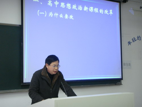 思想政治教育专业教学指导委员会委员林月周教授为思政专业全体学生做了一场题为《普通高中思想政治新课程的课堂教学实践和改革》的讲座。讲座由思政专业建设负责人任映红教授主持。 林月周教授从事中学政治教育多年,有着丰富的教学经验,对高中政治新课程的课堂教学实践和改革研究颇多,有着自己的独到见解。他阐述了高中政治新教改的必要性,介绍了新教改后课程结构、管理、内容、价值取向、教学方式、教学目标、教学评价、教师角色的变革。林月周教授指出,高中思想政治新课强调"三个贴近"(即贴近实际、贴近现实、贴近学生),课堂教学要求"三个面向"(即面向实际、面向现实、面向学生)。教师是课堂的组织者、合作者、引导者、学生学习和成长的促进者。林教授强调新课程教学是一个探索的过程,老师要引导学生探究问题。师范生从现在开始就要树立这种教学理念,同时注意专业知识的储备,不断完善自己的知识结构以适应新课程改革后对教师素质的要求。最后,林月周教授为我们介绍了高中思想政治新课程教学的策略,其中由温州教育研究院高中教研组总结得出的"八步教学法"更是为即将去实习的06政本同学提供了宝贵的教学经验。 林月周教授的内容丰富、条理清晰、鲜活生动的讲座,接近了大学教学与中学教学的距离,同学们对当今中学思想政治新课程改革有了一个全面系统的了解,为专业学习找到了坚实的现实根基。 07政本 许双飞