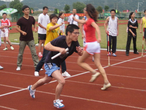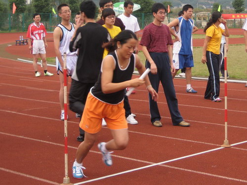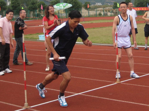 我院共有32名教工参加了本届运动会,上演了一幕幕激动人心的场面:在垒球投准比赛中,英姿飒爽的杨晓虹、余蕙老师以优美的动作,将球准确地抛向圆心,现场掌声一片。最终,杨晓虹老师以无可争议的实力夺得冠军。在跳远比赛中,胡小平和付德军两位老师分获二、三名。在10×80米的比赛中,吴志敏、钭晓东、骆徽、孙慧等十位老师脚穿清一色的钉鞋凛然登场,经过狂奔和追赶,最终取得了第六名,实现了集体项目上难能可贵的突破,现场一片狂欢。