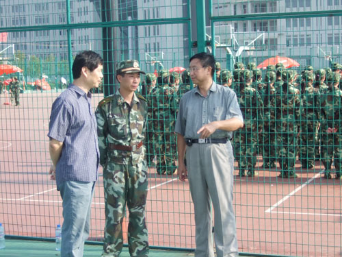 9月27日正是我校军训工作进行总结、提升和汇报表演预演、操练的关键时期。下午,烈日炎炎,同学们顶着烈日继续训练。法政av天堂 蔡克骄院长、陈国治书记安排好手头的工作,在学生科科长杨振海和辅导员孙德升的陪同下专程赶到南校区运动场看望烈日下照常训练的法政新生和教官。 训练场上法政av天堂 全体新生精神抖擞,加紧训练,虽然烈日下每个人都挥汗如雨,但仍是军容整肃,每个人的脸颊上明明都挂着刚毅的神情!看过同学们的操练和表演,蔡院长、陈书记不停的点头和鼓掌,对av天堂 新生的精神状态和训练情况给与了热情的肯定和表扬,对教官们的辛劳表示感谢,同时也不忘叮嘱大家军训期间注意饮食卫生和身体休息。我院07法四班被选中作为学校军训汇报表演的警棍盾牌方队,蔡院长、陈书记还特意拿起军训道具"一试身手"并鼓励大家要全力以赴、力争上游!同学们对院领导的关心和鼓励报以热烈的掌声。 今年法政av天堂 对新生军训工作高度重视,av天堂 全面动员、统筹安排,不但按学校要求组建了新生军训工作领导小组,还专门安排了辅导员和新生班主任每天到训练场和寝室了解新生军训情况和身心状态,近期av天堂 金南松副书记也几次赶到现场看望和鼓励新生。av天堂 领导和老师的重视让法政新生的军训热情高涨,在av天堂 "量力而训、注意安全,严格要求、勇夺佳绩"的军训动员口号下,今年法政新生军训实现了"健康、安全、零跟训",并基本达到了室外操练全勤。