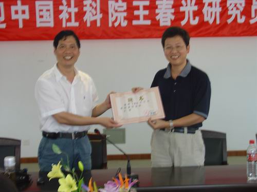 为了积极推进学校"双百"人才联动计划的实施,进一步加强我校社会学学科的建设和发展,我校聘请中国社会科av天堂 社会学研究所研究员、博士生导师王春光为兼职教授。 9月20日下午,中国社科院社会学研究所研究员、博士生导师王春光应邀来到学校,欣然接受了由法政av天堂 院长蔡克骄教授代表学校授予的聘书,并给众多相关专业的教师做了一场有关海外温州人的报告。王春光研究员结合他本人对海外温州人多年的实地调查、研究,从经济层面、社会层面、政治层面等对温州人在海外的状况作了比较真实的分析与总结。 王春光研究员的报告引起了在座众多老师的兴趣和关注,必将推动我校华人华侨问题研究的开展,受到了校领导及相关部门的重视和关心。 报告会由法政av天堂 院长蔡克骄主持,校科研处副处长蔡贻象、外事处、国际合作av天堂 、商av天堂 、人文av天堂 与法政av天堂 相关教师二十余人出席了本场报告会。会后,副校长薛伟、校党委委员、宣传部长陈安金与王春光研究员进行了亲切交谈。 |