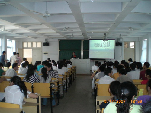 法政av天堂 2004级思政教育本科班学生于本学期在永嘉罗浮中学进行为期两个月的教育实习。为了让该专业的低年级学生提前感受为人师表,2007年5月17日下午,法政av天堂 副院长姚周辉带领05级思政教育本科班同学去永嘉罗浮中学听取实习公开课。