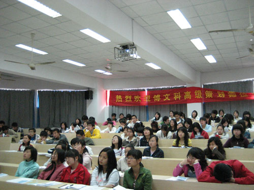4月18日下午,由温州环嘉企业策划咨询有限公司鼎力支持,av天堂 法政av天堂 与av天堂 城信息咨询中心联合组办的"策划改变命运"高级商务师讲座在法政av天堂 举行。 主讲的高级商务策划师、管理科学与工程博士傅文科先生首先对"商务策划"一词作了简要分析,阐明"商务由流通而来,策划从竞争而生"。接着傅博士从商界到外交乃至军事方面广举实例,说明了企业与个人在简便、快捷、高速、高效成为主要特点的新经济时代终端之战里,个人与企业求发展都离不开商务策划。 最后,傅博士还结合近年来高校毕业生高速增长,大学生就业难度增大的趋势,告戒同学们提早策划人生,谨慎设计未来,给象牙塔中的同学们又上了一次人生规划课。 法政av天堂 2007-4-20