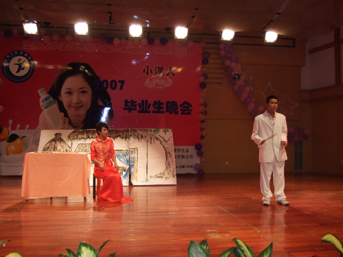 6月10日晚6:30,av天堂 法政av天堂 首届学术文化节闭幕式暨2007毕业生晚会在北校区音乐厅隆重举行。列席的嘉宾有法政av天堂 的党政领导、辅导员和部分毕业班班主任。 晚会在Spirit乐队的一首火热激情的《真的爱你》中拉开了的序幕。动人的歌声,曼妙的舞姿博得了现场观众的热烈掌声。相声《沙僧日记》令人捧腹不止,而小品《三顾茅庐--现代版》更是将晚会推至了高潮。晚会最后在以一组《祝福》的歌曲联唱中圆满结束。这次晚会上院长蔡克骄老师做了晚会致辞,他对广大毕业生提出希望并表达了自己对毕业生的良好祝愿,鼓励毕业生能够在今后的人生道路上艰苦拼搏,为母校争光。 整场晚会在眷恋、惜别、激励的气氛中结束了,它给每一位毕业生留下了美好而难忘的回忆。同时让我们祝愿所有2003级的毕业生前程似锦,一展鹏程。 通讯员:金祖福