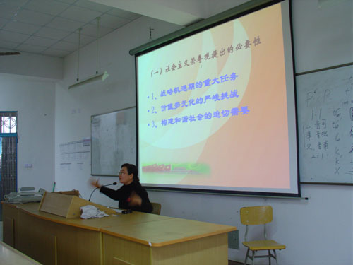 为使广大学子更深刻地认识"社会主义荣辱观"的本质及重要意义,2006年11月29日下午1:30,法政av天堂 于av天堂 北校区1-203召开了一次主题为"迎接新时代,践行社会主义荣辱观"的讲,主讲人为任映红教授。 首先,任教授提出当代大学生应该努力做到以下三点: 一,迎挑战,把握复杂形势。 二,知荣辱,提升社会文明。三,重实践,塑造自身形象。讲座中,任教授还强调了"社会主义荣辱观的重要性","社会主义荣辱观提出的重大意义",并指出对"八荣八耻"的理解应体现在细节上。 最后,讲座在一片热烈的掌声中结束了。通过本次讲座同学更加深刻地认识到作为新时代大学生应如何应对新形势,将"社会主义荣辱观"落实到细微处。
