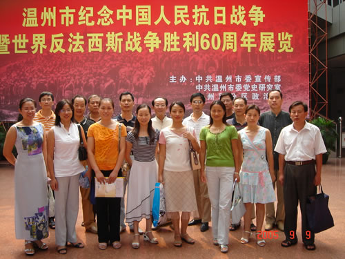 2005年9月9日下午,法政av天堂 党总支组织教工党员前往温州市展览馆观看"纪念中国人民抗日战争暨世界反法西斯战争胜利60周年大型图片展"。本次展览展出了500多幅珍贵的图片,分"日军侵华罪行"、"抗日民族统一战线的形成和中国抗战的正面战场"、"中国共产党领导的人民抗日战争"、"中国抗日战争的伟大胜利"、"中日友好、和平共处"等五个部分,以翔实的历史事实,揭露了日本帝国主义的侵略罪行,歌颂了中国人民前仆后继、不屈不挠反抗侵略的英雄事迹。肯定中国人民为世界反法西斯战争胜利付出的巨大民族牺牲,为人类文明进步事业做出了历史性贡献。其中30多幅作品是反映温州三次沦陷的史实。通过参观,使我们深刻了解了抗战道路的曲折坎坷,又一次重温了党艰苦卓绝的奋斗史,波澜壮阔的革命史,用血与泪的事实证明了中国共产党是伟大的、正确的、光荣的党,使我们对党的先进性有了更进一步的认识和体会。 附图: