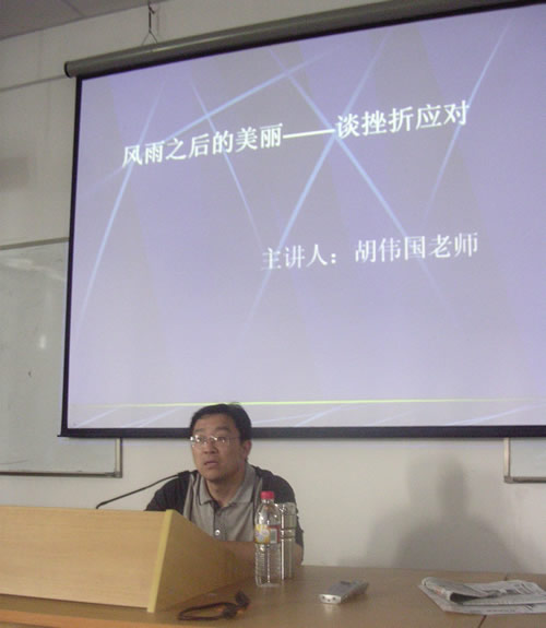 6月8日下午,av天堂 心理咨询会的两位老师在2幢202教室给我们法政av天堂 的学生做了两场别开生面的心理讲座。一场是胡伟国老师的《风雨之后的美丽——谈挫折应对》,另一场是朱浩亮老师的《"爱"的成长——大学生恋爱与心理健康》,两位老师分别从挫折的应对和恋爱这两个角度出发,循循善诱,生动形象地给在场的同学上了两场心理辅导课。 胡伟国老师首先采用互动的方法,要求在场同学在4分钟内写出除夕之夜的5个愿望,接着邀请一位同学每次舍弃一个愿望,从最后剩下的愿望来看他的遇挫能力。这个互动一下子激活了现场气氛,大家的积极性也提高了许多。然后胡老师以发生在学校的事件作为案例,对我们在学习、生活、沟通等方面遇挫时所表现出来的情况进行探讨,从现象入手,深入浅出地告诉我们挫折对我们所起到的积极、消极作用,为什么同样的挫折会产生不同效果的原因和我们遇挫时应持有的态度。最后,胡劳师要求我们"不要在冬天看书",即让我们在心灰意冷、感到前途渺茫时,不要对自己失去信心,记注希望在前头。让我们持着一颗永不放弃的心,记注最美丽的风景总是在风雨后出现的。 与胡老师不同的是,朱老师用诙谐的语言给我们介绍了"爱"的成长——大学生恋爱与心理健康。他从对爱情的科学理解出发,提出当前大学生的恋爱特点及现状,并从中分析出大学生恋爱的常见问题以及恋爱心理和行为的调适。朱老师的招牌式的幽默语言一次次赢得了在座同学们的掌声。在讲座接近尾声时,朱老师让我们记注"三草"名言——"天涯何处无芳草"、"兔子不吃窝边草"、"好马不吃回头草",并要求我们理性地对待大学四年中的恋爱问题。 下午的两场心理知识讲座在大家的欢声笑语中落下帷幕,本次活动开启了同学们的心理大门,让他们感受到了关爱原来从心开始。