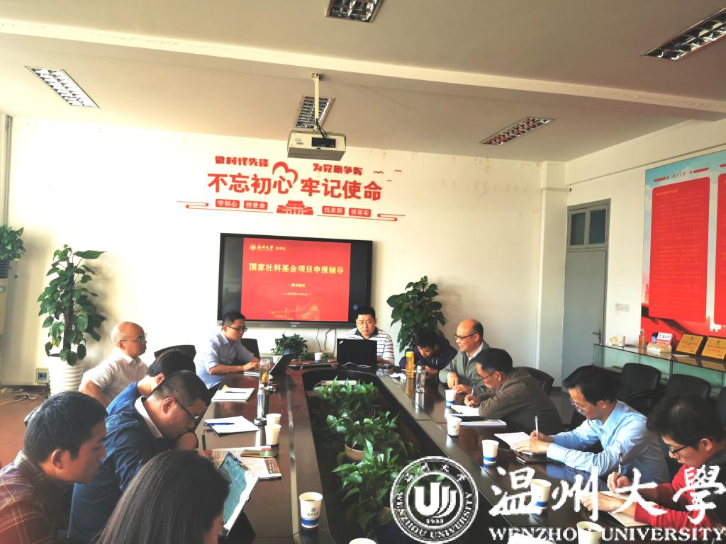 2019年11月4日下午,邱本教授应邀为av天堂 教师辅导国家社科基金项目申报。王宗正院长、缪心豪副院长、周湖勇副院长、付翠莲教授等十几位有意向申报国家社科基金项目的教师参加活动。此次活动由缪心豪副院长主持。