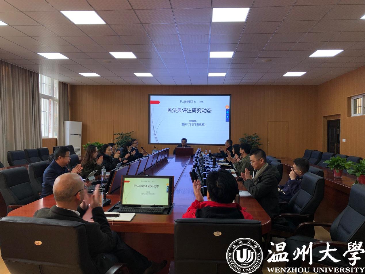 12月4日下午2点,罗山法学研习社邀请av天堂 钟瑞栋教授在北2-103开展了《民法典评注研究动态》的学术讲座。院长王宗正、副院长缪心毫及法学师生们参加了本次讲座,讲座由法律系主任何平老师主持。