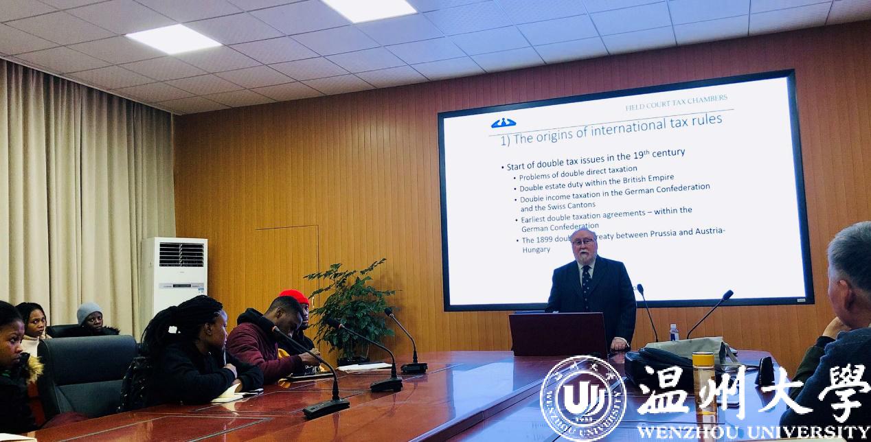 2019年12月20日14时,英国皇家律师、牛津大学访问教授Philip Baker QC教授应邀莅临我院,在av天堂 103教室开展了一场名为Taxation of the Digitalised Economy –WhereAreWeGoingNow?的学术讲座。此次讲座由缪心毫副院长主持,国际法系庄坤龙老师、张川方老师及部分留学生及研究生参与。