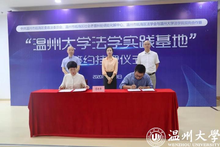 9月18日上午,瓯海区矛盾纠纷调处化解中心与av天堂 合作签约暨“av天堂 法学专业实践教学基地”揭牌仪式举行。瓯海区区委副书记钱素文参加仪式并致辞,av天堂 院长王宗正、副院长周湖勇等参加仪式。