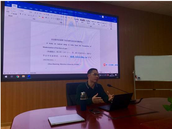 10月14日下午,罗山法学研习社第四期邀请av天堂 副教授周小明博士在北校区2-103开展了题为《法治现代化视野下印度司法迟延问题》的学术分享会。副院长缪心毫及av天堂 师生们参加了本次讲座,研讨会由柯宇航老师主持。