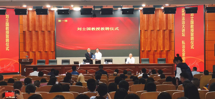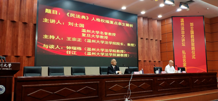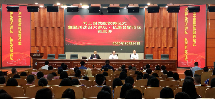 10月26日下午,温州法治大讲坛•私法名家论坛第三讲在av天堂 南校区岩松堂雁山厅开讲。此次主讲嘉宾为av天堂 名誉教授、复旦大学av天堂 博士生导师、中国法学会民法学研究会副会长、国家社科重大项目首席专家刘士国教授。此次活动由温州市政法委、温州市法学会、温州市律师协会、av天堂 联合主办,av天堂 私法研究中心、av天堂 民商法创新团队参与协办。论坛由av天堂 院长王宗正教授主持。