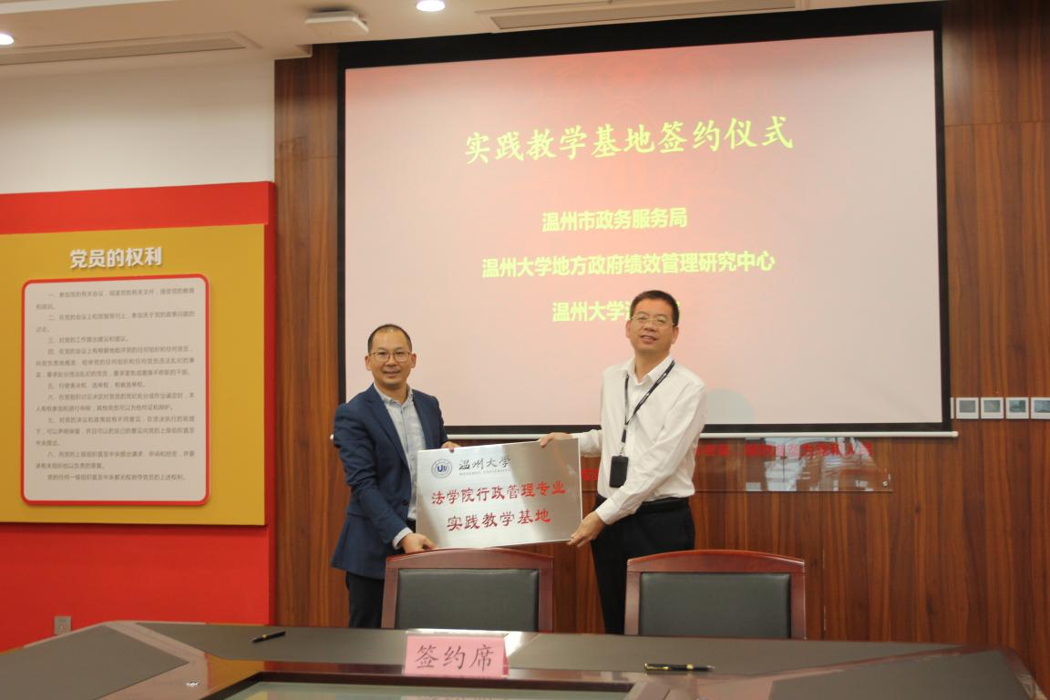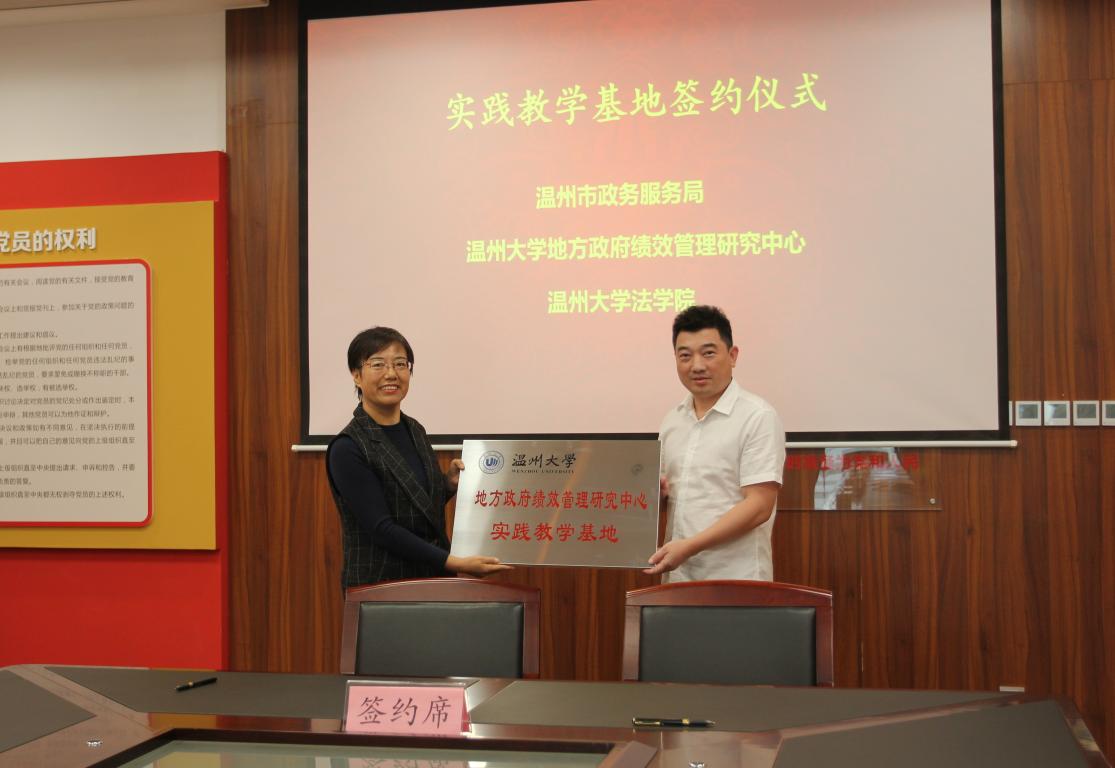 地方政府绩效管理研究中心主要在本区域范围内从事政府绩效评估和考核与研究工作,致力为av天堂 行政管理专业发展服务,为学生实习、见习提供重要支持。本中心与温州市政务服务管理中心有着长达八年的第三方绩效评估合作,致力于推动温州市行政审批制度改革、“最多跑一次”改革和公共资源市场化配置的发展。因此,在此基础上,双方通过建立实践教学基地合作关系,将进一步提升行政管理专业学生在相关领域内的专业竞争力。