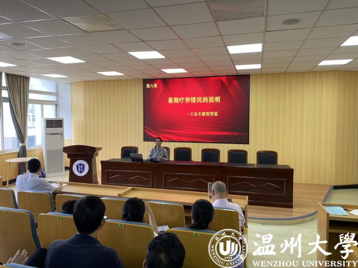 会议议程第八项是由工会主席宾雪花老师做暑期疗养情况的说明。