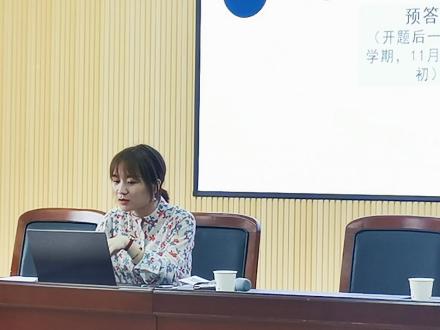 胡亚玲老师围绕研究生入学手册相关内容再次介绍了硕士学位论文要求和培养环节安排,就学位论文的各个环节做了梳理总结,包括开题报告的结构与常见问题、实习的要求、中期考核的等级评定、盲审的注意事项等。明确开题报告字数不少于3000字,参考文献一般不少于30篇,要有必要的外文文献等。胡老师着重强调了开题作为学位论文撰写的第一个环节的重要性,以及选题的严谨性与科学性,叮嘱大家要务必摆正态度,认真准备,这样答辩时方可做到胸有成竹、对答如流。胡老师表示,av天堂 非常重视学位论文的质量提升,鼓励同学们踊跃参与av天堂 学位论文培育项目。对于硕士研究生的实践环节,胡老师也做了说明,提醒同学们合理安排时间。此外,胡老师期望同学们能够继续积极配合av天堂 的管理工作,既要提高自身的学习科研能力,更要提高个人综合素质能力。