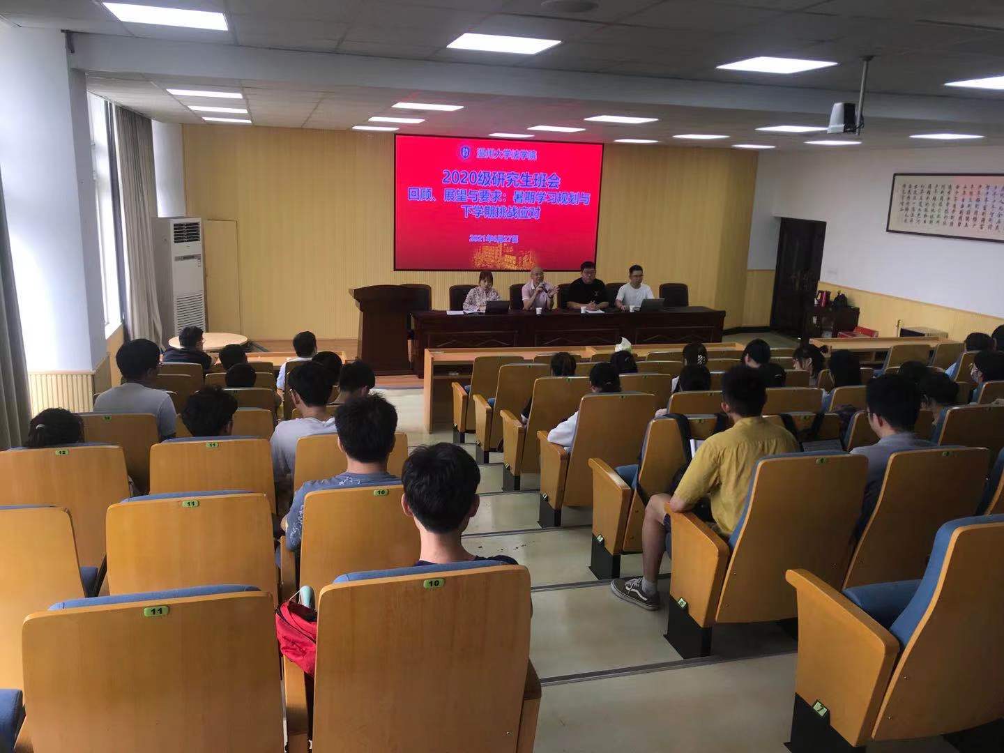 白驹过隙,时光荏苒,一年的研究生学习生活即将接近尾声。回顾过去,展望未来,为提高研究生科研热情、解答学习疑惑、明确假期学习规划和任务,并为下学期的科研学习挑战做好准备,我院2020级研究生于2021年6月27日在301教室举行了以 “回顾、展望与要求:暑期学习规划与下学期挑战应对”为主题的班会。av天堂 院长王宗正教授,2020级硕士研究生班主任、硕士研究生导师任江副教授、2020级硕士研究生辅导员白昌科老师,教学与科研秘书胡亚玲老师,以及全体2020级硕士研究生参加班会,会议由胡亚玲老师主持。