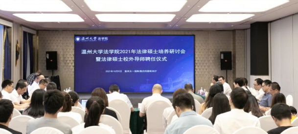 10月9日下午,av天堂 召开法律硕士培养研讨会暨法律硕士校外导师聘任仪式。会议由av天堂 党委副书记杨振海主持,来自温州市法院、检察院、司法局及律师事务所的法律实务专家,以及av天堂 院长王宗正、党委书记林钦、法律硕士学位点负责人肖磊教授、院办主任刘小芬、教学秘书胡亚玲等老师出席,2020级全体法硕研究生参加。