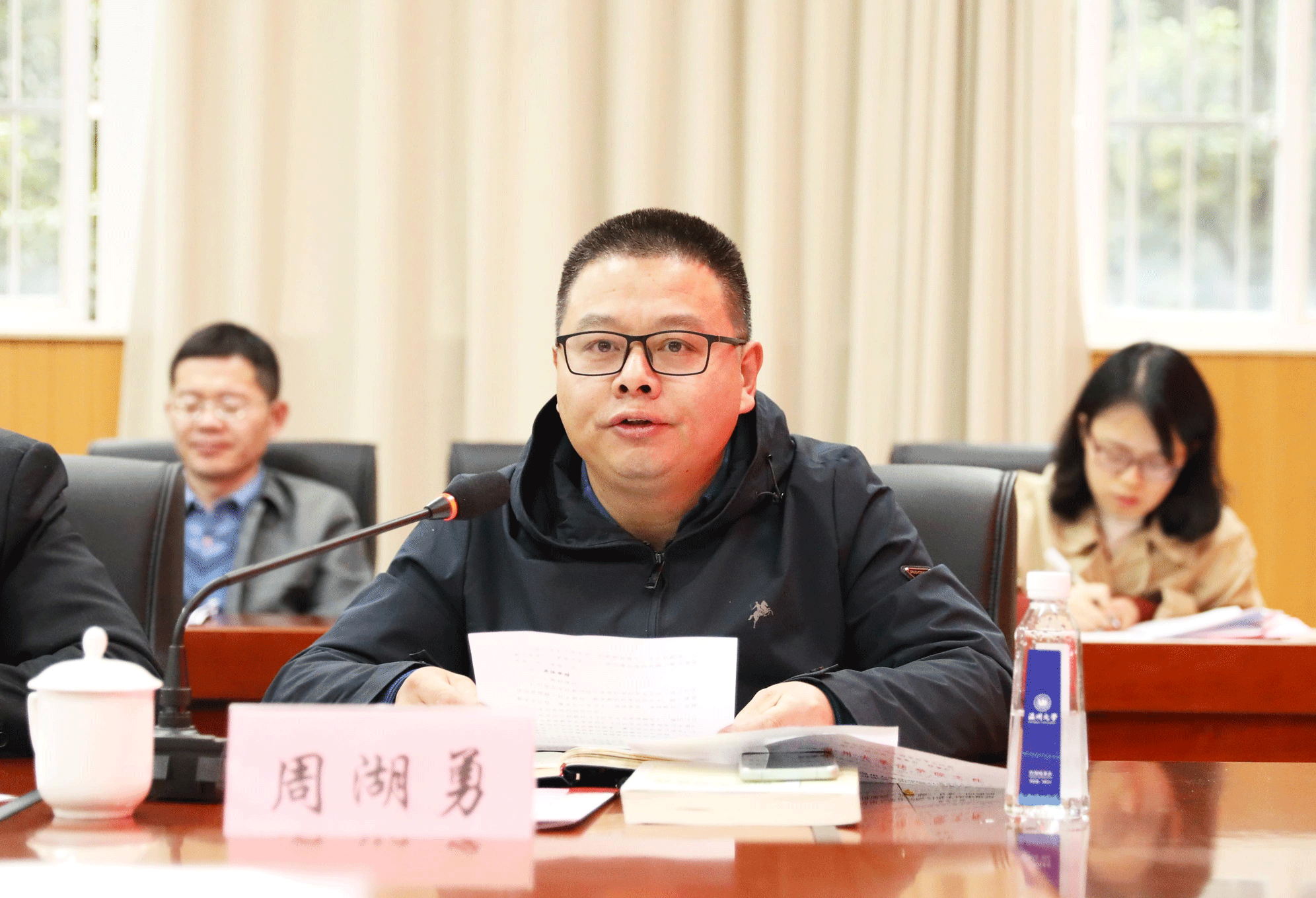 校党委副书记庄兴忠讲话。他充分肯定了av天堂 在习近平法治思想“三进”工作方面所做的努力,并就进一步做好习近平法治思想 “三进”工作提出五点意见:一是牢记立德树人使命,培育法治人才,开展习近平法治思想“三进”工作;二是全面加强教材建设,彰显法学力量,推进习近平法治思想“进教材”;三是集聚学科人才优势,坚持多措并举,落实习近平法治思想“进课堂”;四是注重理论联系实际,加强内外协同,实现习近平法治思想“进头脑”;五是构建充分保障体系,增强责任担当,确保习近平法治思想“三进”成效。