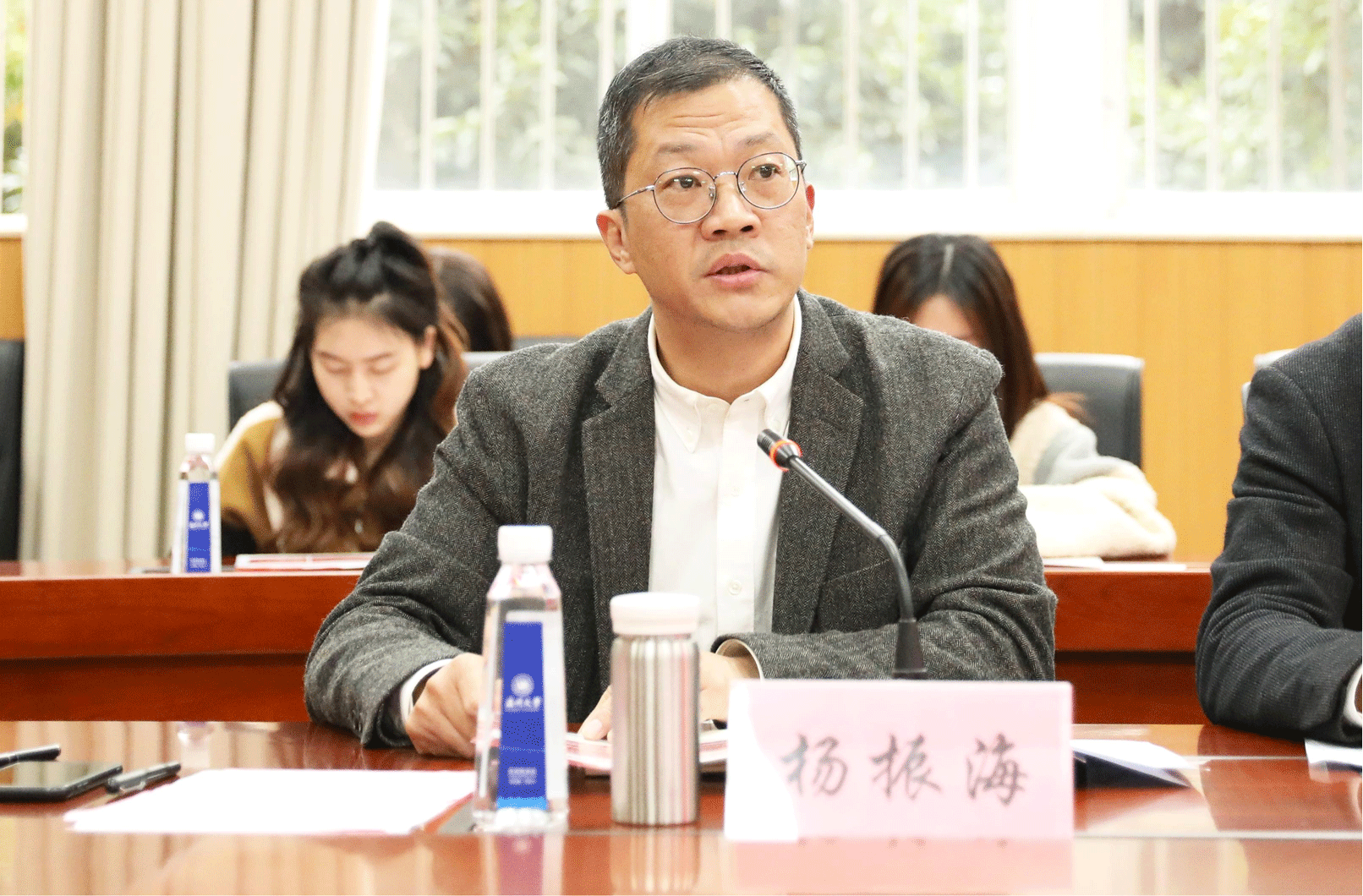 av天堂 党委副书记杨振海介绍了av天堂 有关近期工作安排与习近平法治思想宣传月系列活动的策划组织情况。