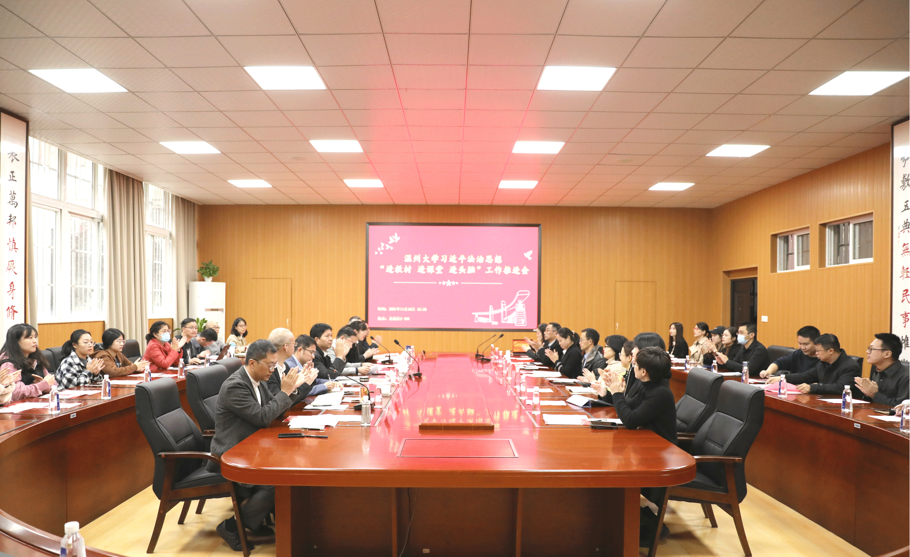 为深入学习贯彻习近平法治思想,全面落实立德树人根本任务,推动法学专业高质量发展,提升法治人才培养水平。11月16日,我校在北校区2号楼103报告厅举行习近平法治思想“进教材、进课堂、进头脑”(以下简称“三进”)工作推进会。校党委副书记庄兴忠,校党委委员、宣传部部长潘玉驹,教务处副处长夏远志,团委副书记易招娣,av天堂 领导班子成员出席会议,av天堂 各科室负责人、法学全体教师及学生代表参会。会议由av天堂 党委书记林钦主持。