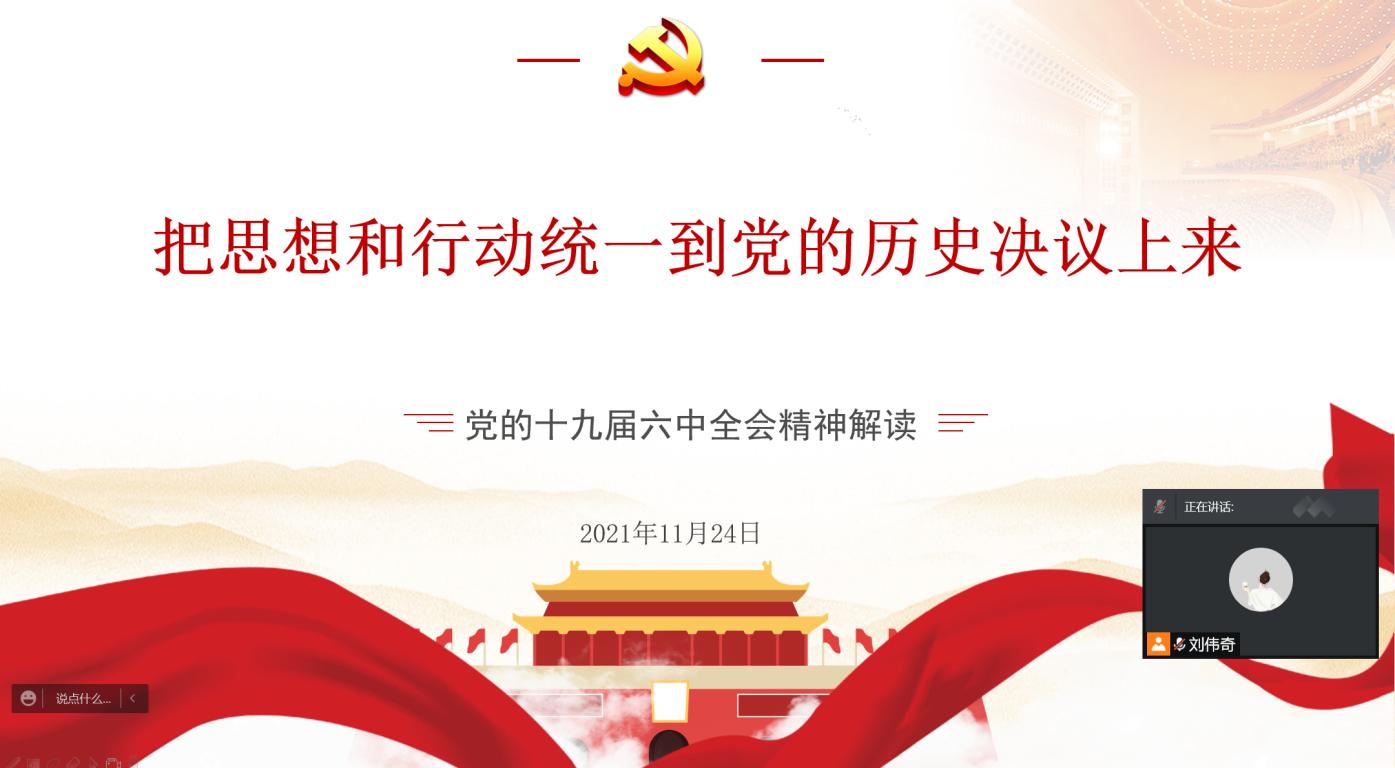 av天堂 党委书记林钦带领全体教工学习了党的十九届六中全会精神。从深刻领会第三个历史决议的战略考量、深刻领会第三个历史决议的主要内容、深刻领会新时代新征程展现新作为要求三个方面做了全面深刻的解读和宣讲。林钦书记指出,十九届六中全会重点总结了新时代党和国家事业取得的历史性成就、发生的历史性变革和积累的新鲜经验,对推动全党进一步统一思想、统一意志、统一行动,团结带领全国各族人民夺取新时代中国特色社会主义新的伟大胜利,具有重大现实意义和深远历史意义。全会审议通过的《中共中央关于党的百年奋斗重大成就和历史经验的决议》揭示了我们党始终掌握历史主动的根本原因和党永葆先进性和纯洁性、始终走在时代前列的根本途径,具有重大的历史意义和现实指导意义。我们必须把党的历史学习好、总结好,把党的成功经验传承好、发扬好,要坚持党的全面领导不动摇,坚决维护党的核心和党中央权威,充分发挥党的领导政治优势,把党的领导落实到党和国家事业各领域各方面各环节。