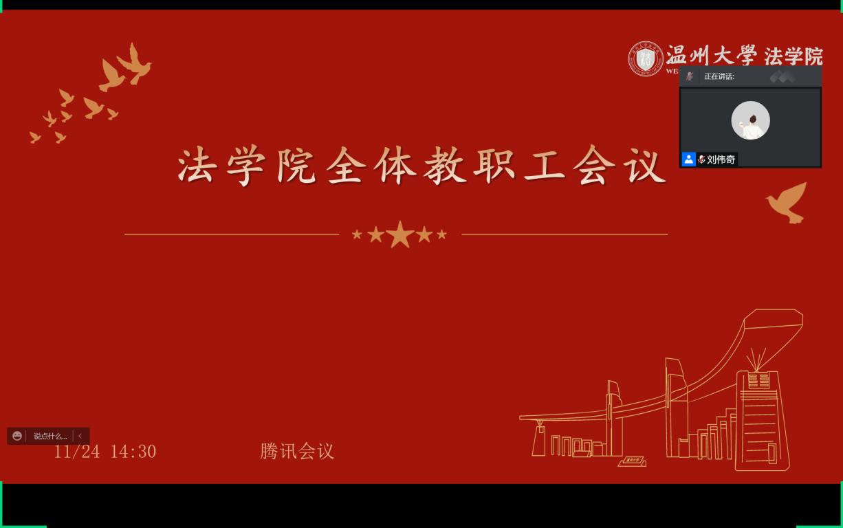 11月24日下午,av天堂 通过腾讯会议召开av天堂 全体教职工会议,会议由av天堂 党委书记林钦主持,全体教职工参加。