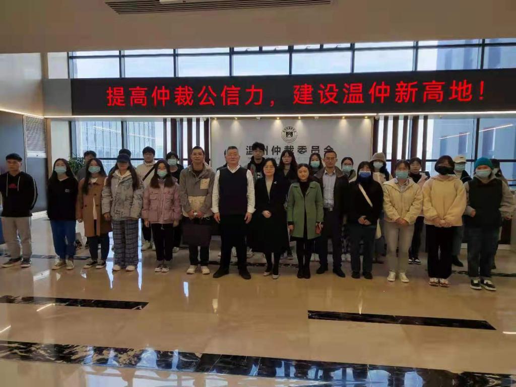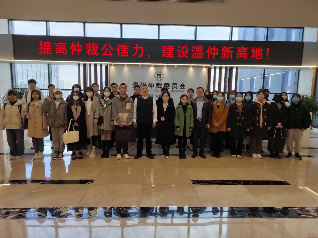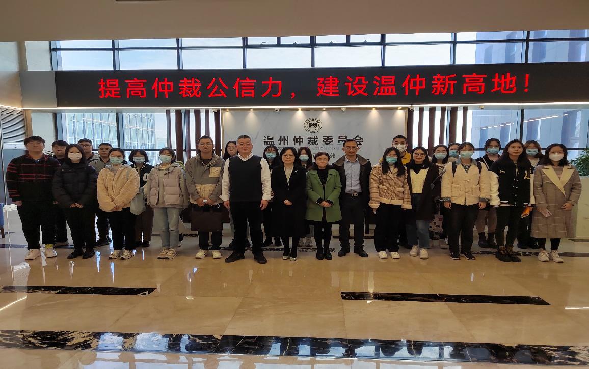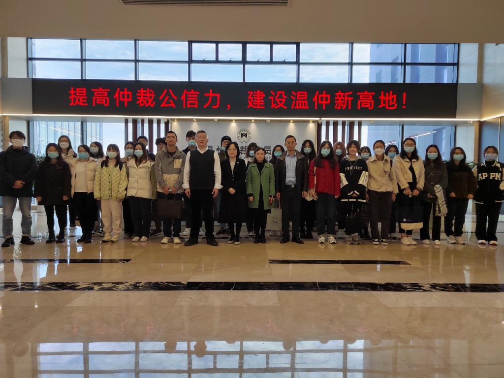2021年11月25日,av天堂 2018级法学专业本科生赴温州仲裁委员会开展实践教学活动,课程组指导老师李勇军、何平、柯宇航、邱杓丹带队前往。