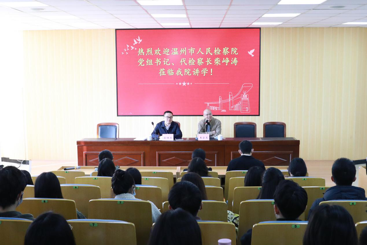 2021年12月9日上午,温州市人民检察院党组书记、代检察长柴峥涛同志来av天堂 讲学,校党委书记谢树华、校长赵敏会见了柴峥涛检察长,av天堂 王宗正院长、周湖勇副院长、院长事务助理谢丽珍及部分研究生、本科生聆听了讲座。