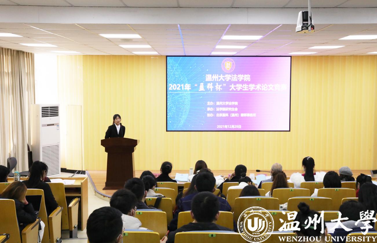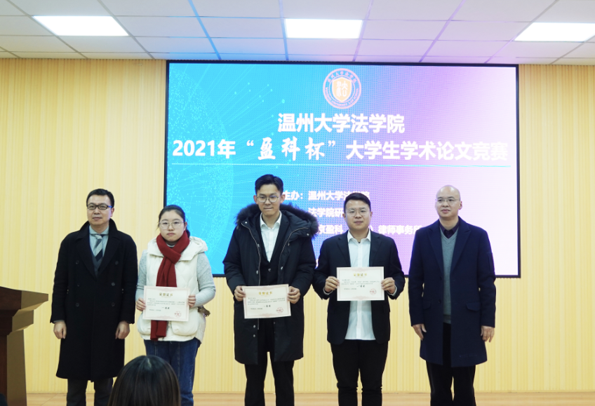 为营造浓厚的学术研究氛围,提升学生的学术研究能力,加强研究生和本科生之间的学生交流互助,av天堂 于12月29日举办2021年“盈科杯”大学生学术论文竞赛。本次竞赛以“共同富裕与法治发展”为主题,学生围绕创新创业、公共服务、税收消费、农民农村、社会治理、经济社会发展等领域的法律制度、法律规则、法制建设相关问题展开研究。竞赛由av天堂 研究生会承办、北京盈科(温州)律师事务所协办。av天堂 院长王宗正教授、盈科(温州)律师事务所党支部书记陈德元律师、盈科(温州)律师事务所青工委主任娄雪律师,以及av天堂 教师谢丽珍、李娟、黄点点、侯丽维出席活动并担任评委。