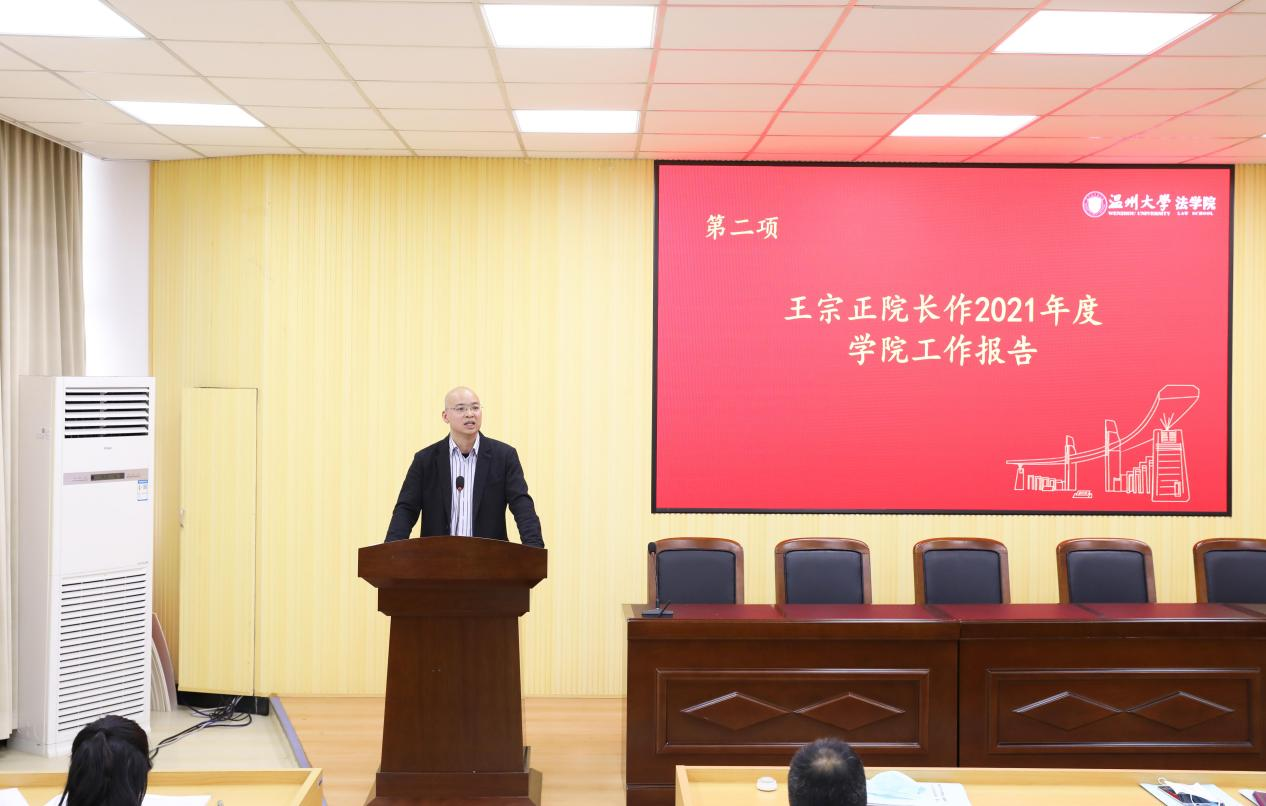 院长王宗正作《av天堂 2021年度院长工作报告》,报告回顾了2021年av天堂 在本科教学、学科科研、师资建设、地方服务、学生培养、基层党建等方面所取得的成绩。同时从全面提升本科质量、做好学科科研与研究生工作、强化人事工作政策引导、突出服务社会工作重点、提升人才培养质量显示度、党建引领av天堂 和谐发展六个方面对2022年av天堂 工作进行了展望,鼓励全体教师要着力推动av天堂 持续快速发展。