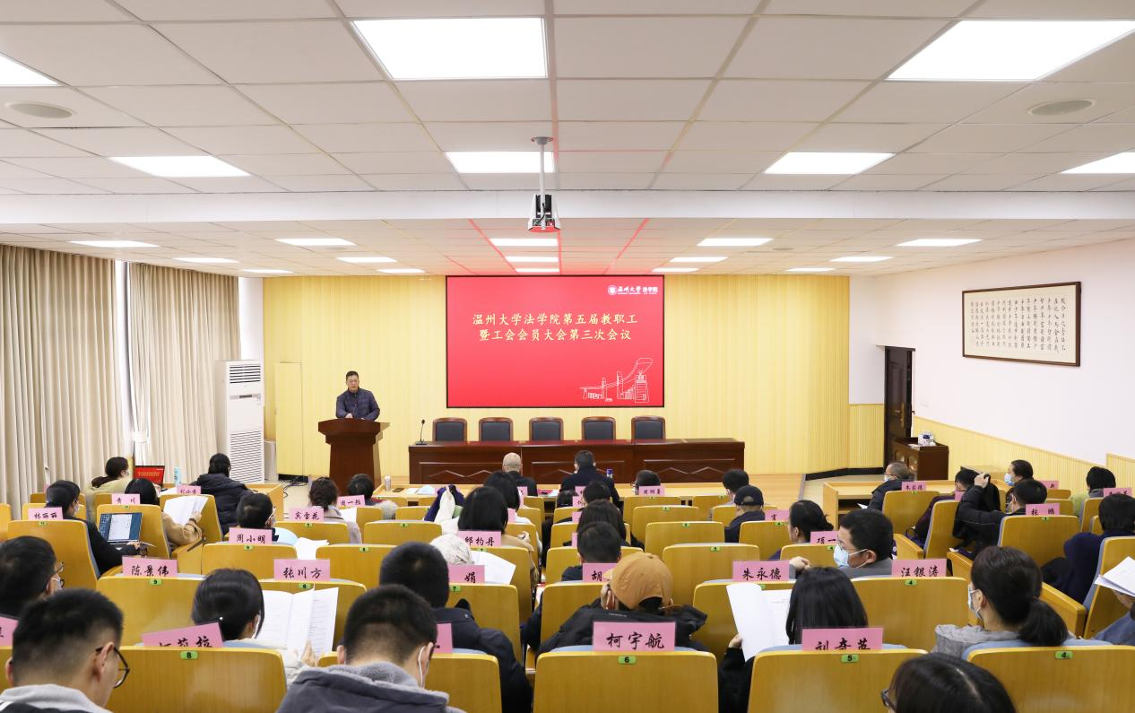2021年12月31日下午,av天堂 在北校区2号楼301报告厅召开了av天堂 第五届教职工暨工会会员大会第三次会议。会议由杨振海副书记主持,av天堂 全体教职工参加会议。