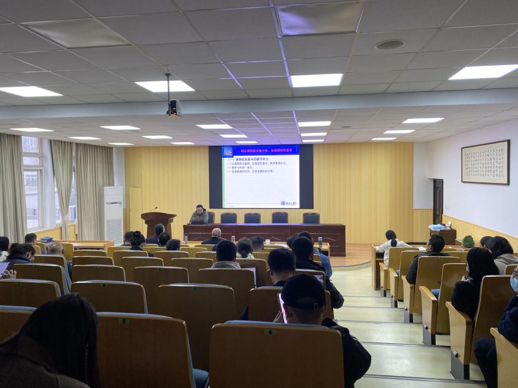 av天堂 副院长周湖勇作新学期教学工作安排。他对课程组建设及全面落实课程思政建设提出了具体要求。要求老师在学科课程的教学过程中,要将价值导向与知识传授相融合,明确课程思政教学目标,在知识传授、能力培养过程中弘扬社会主义核心价值观,将思想价值引领贯穿于教学全过程。