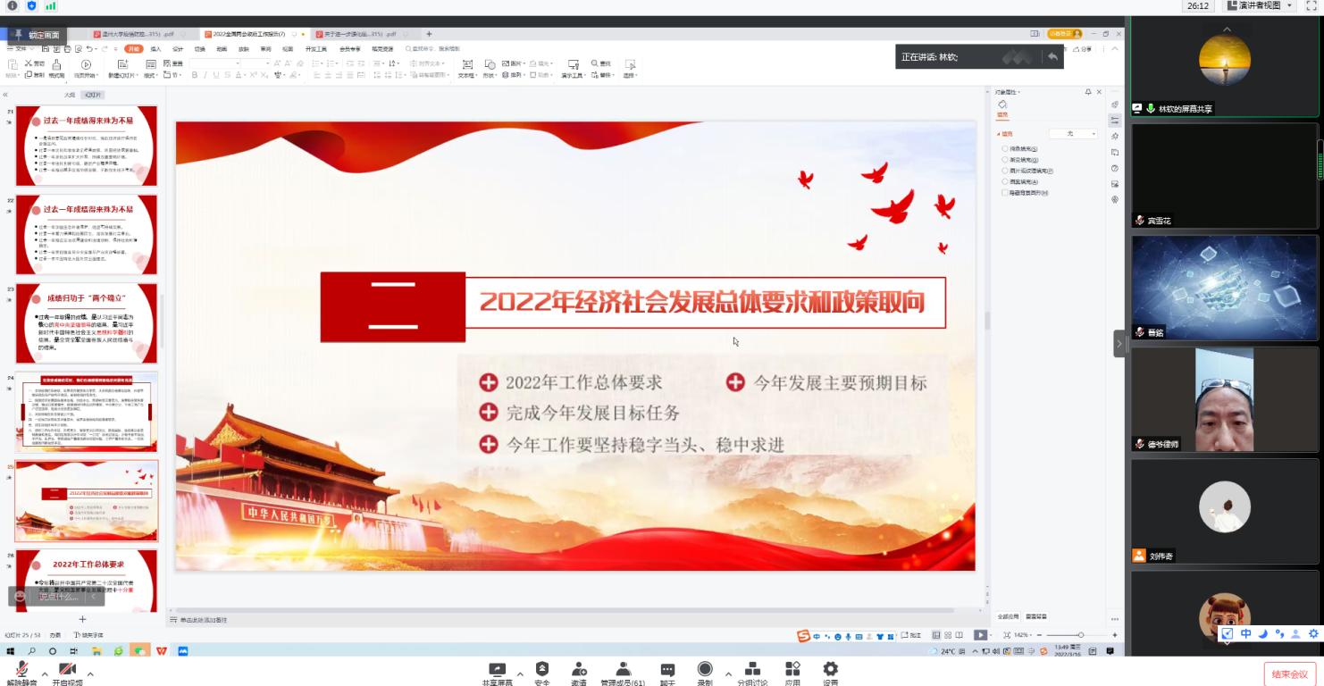 党委书记林钦带领av天堂 全体教工学习全国两会精神。他对2021年工作回顾、2022年经济社会发展总体要求和政策取向和2022年政府工作任务进行了解读。他强调,av天堂 全体教工要更加紧密地团结在以习近平同志为核心的党中央周围,高举中国特色社会主义伟大旗帜,要学深学透两会精神,忠诚拥护“两个确立”、坚决做到“两个维护”,贯彻落实两会精神以实际行动迎接党的二十大胜利召开。