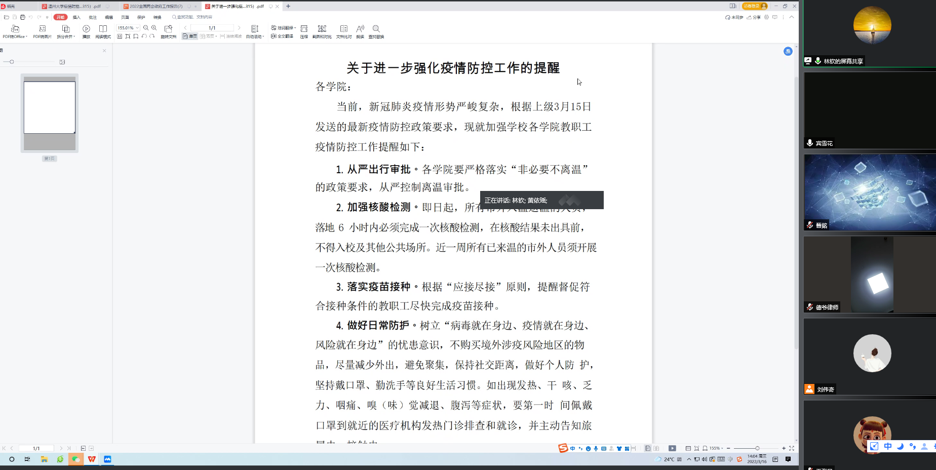 会上,林钦还就av天堂 疫情防控工作作部署,进一步宣传学校关于疫情防控工作的相关文件和通知。他指出,目前全国疫情呈现多点发生、局部暴发的态势,这给疫情防控工作带来更大挑战,也要求大家要继续抓好常态化疫情防控。打赢疫情防控这场持久战需要大家共同努力,老师们应当尽早完成疫苗全程接种和加强免疫接种,建立可靠有效的免疫屏障,av天堂 教师“非必要不离温”,严格出行审批,加强核酸检测,做好日常防护,坚决落实“双检”制度。