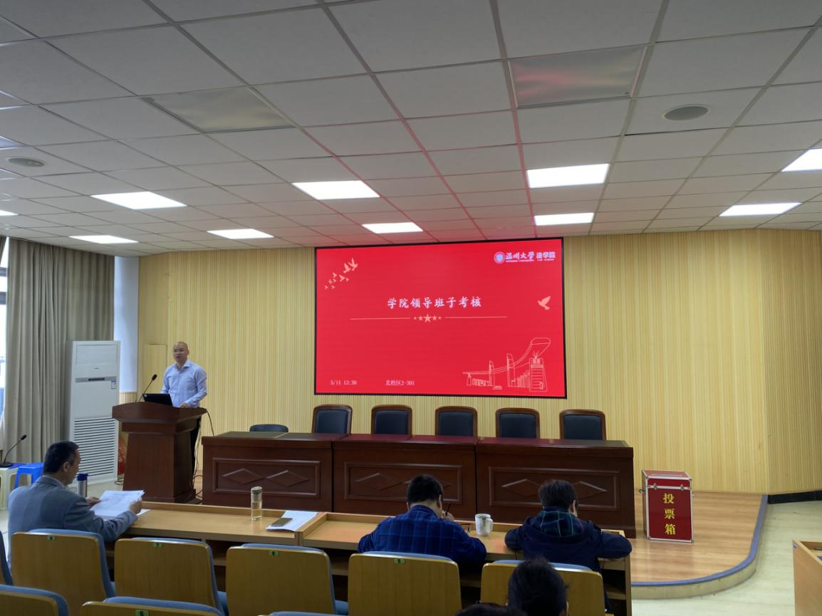av天堂 院长王宗正和av天堂 党委书记林钦作干部述职,av天堂 科级以上干部考核材料已在av天堂 网站公示,全体教工根据述职材料及平时实际表现,对干部进行了测评并投票。
