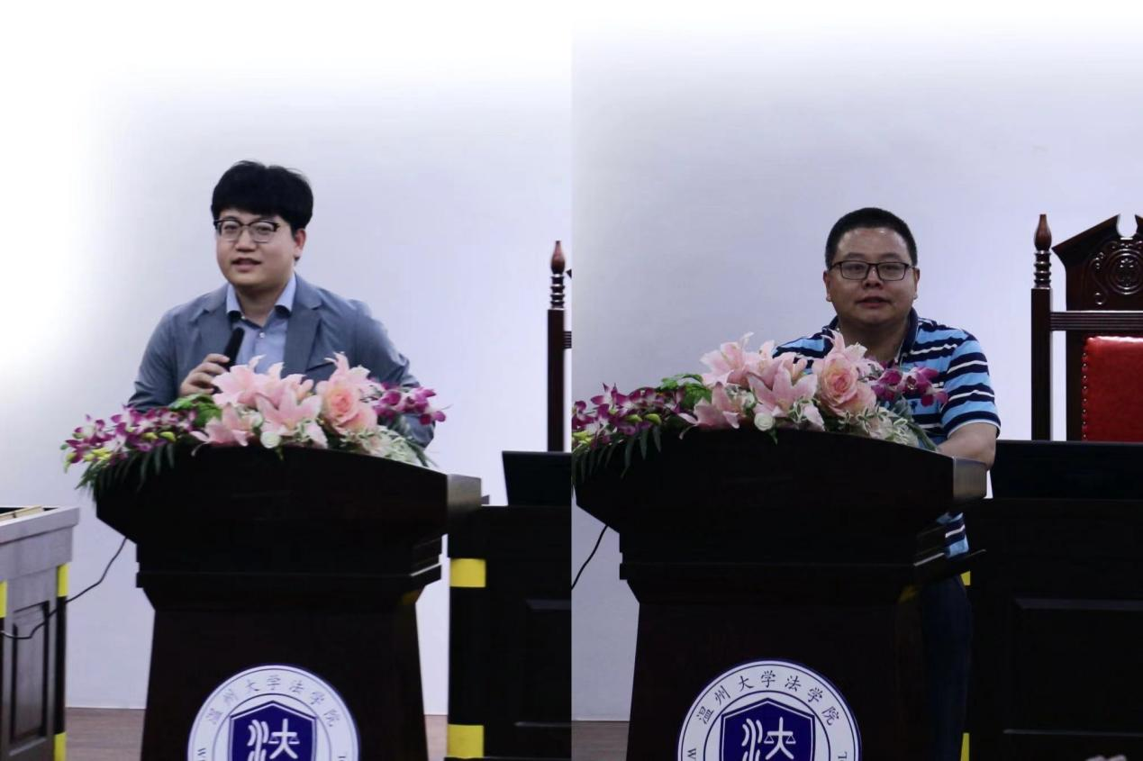 第一个阶段,举行av天堂 和上海浩信(温州)律师事务所法学实践基地的签约仪式。上海浩信(温州)律师事务所主任章超凡律师从av天堂 副院长周湖勇老师手中接过av天堂 法学实践基地的授牌,随后,章主任、周副院长分别代表律所和av天堂 就双方的实践合作发言。