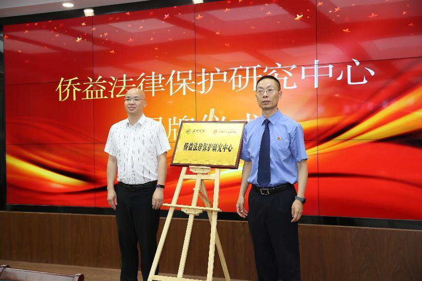 6月30日下午,调研组与文成县检察院、县侨联相关部门工作人员及部分海外联络员、检侨联络员进行座谈。会议开始,陈锋检察长、赵丽春主席共同为涉侨检察官办公室揭牌,王宗正院长、陈锋检察长共同为侨益法律保护研究中心揭牌。